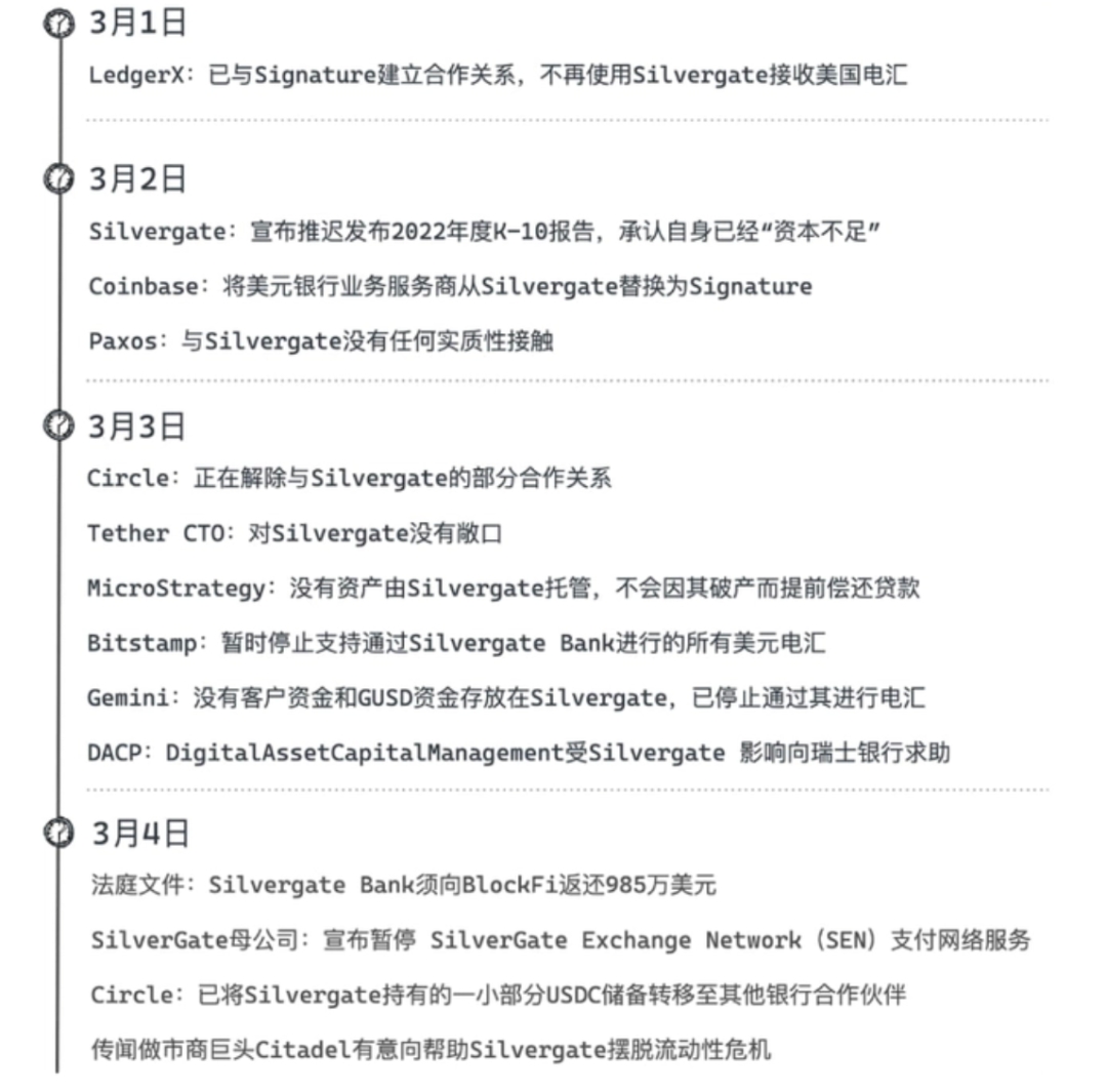 例如引起了白宫关注的加密货币银行Silvergate正逢客户逃离叠加监管质疑,恐陷入困境有破产清算风险,据统计Silvergate股价过去一年累计下跌95%。Silvergate Bank作为虚拟资产友好银行,建立了自己的结算支付网络,承担着虚拟资产与美元之间的流通重要作用。而发生在Silvergate Bank上的流动性问题,也是美国监管机构最担忧的主要风险。银行“挤兑”并不是因为银行本身存在违规行为,而是客户发现虚拟资产市场已然崩溃,赶忙去银行进行提款的结果。